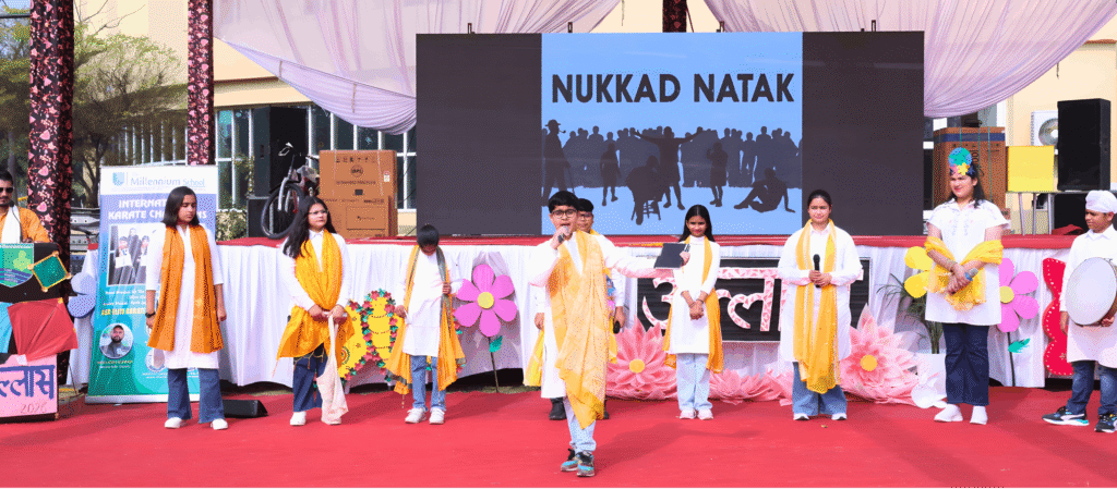 Through engaging Nukkad Natak performances, students explore the art of acting while presenting meaningful social themes. This platform encourages confident expression, teamwork, and creativity as learners bring powerful messages to life through dialogue, movement, and stage presence. It nurtures empathy, awareness, and the ability to connect with audiences with clarity and impact