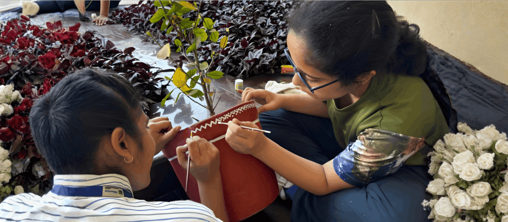 Students engage in artistic activities that inspire originality and aesthetic appreciation. Pottery painting allows them to experiment with patterns and colours while developing concentration and creative confidence.